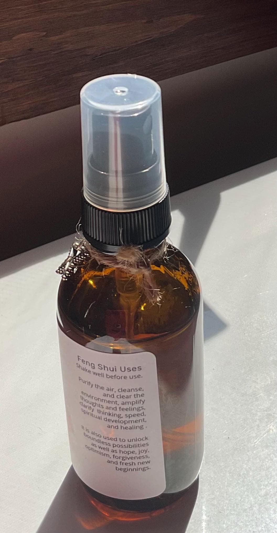 This smudge spray is best used to purify the air, cleanse and clear the environment amplify thoughts and feelings, clarify once thinking, speed, spiritual development, and healing . It is also used to unlock boundless possibilities as well as hope, joy, optimism, forgiveness, and fresh new beginnings. Made with Full Moon vibration, quartz crystals, and Full Moon water.