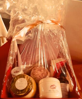 Focus on relaxation and rejuvenation with our gift basket. Show her that you've put thought into her self-care routine by selecting items she will truly enjoy. Our gift basket includes our luxurious, sweet Pineapple Shea-Aloe Body Butter, rejuvenating Honey Coffee Body scrub, room spray, fine scent wax melts, sweet smelling bath bomb, mini sandalwood candle, a manifestation journal and pen.