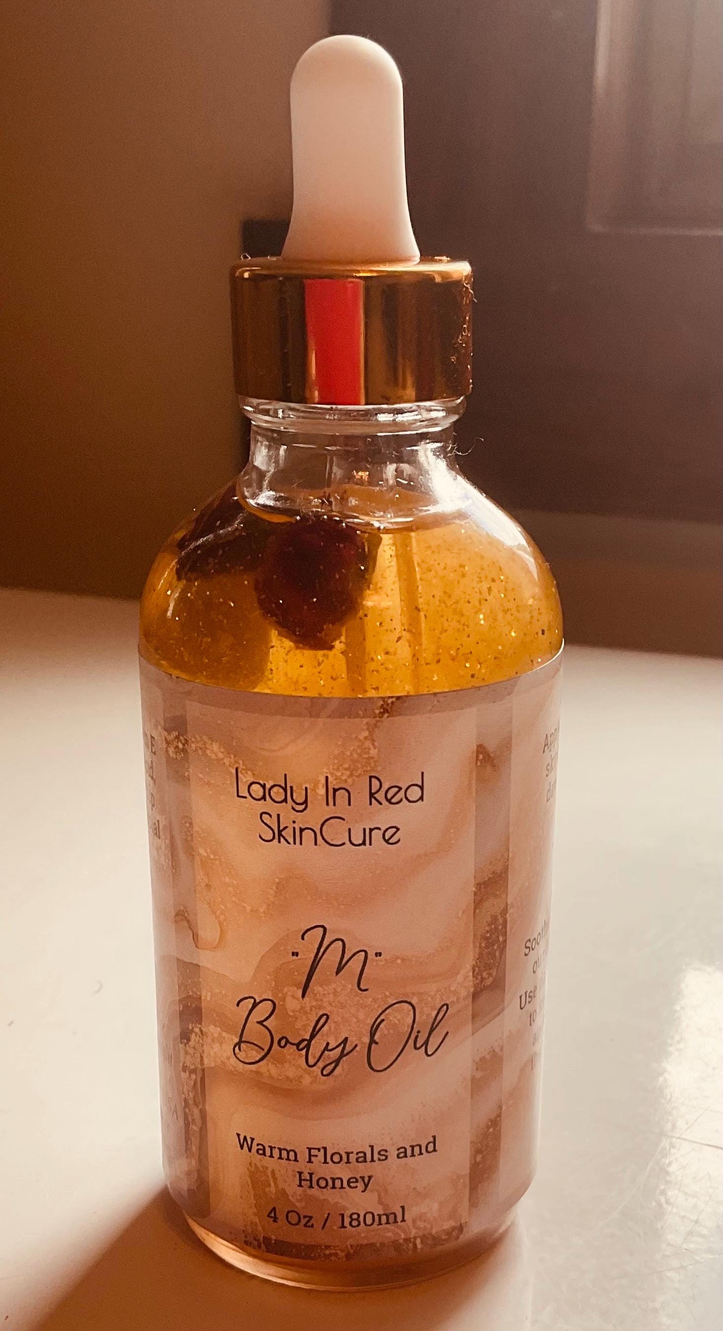Our gift basket includes our luxurious, fast absorbing dry body oil, shimmer body oil for glowing and radiant skin, and nourishing Yoni oil, sweet bath bomb, Pineapple Shea Aloe body butter, a manifestation journal and pen.