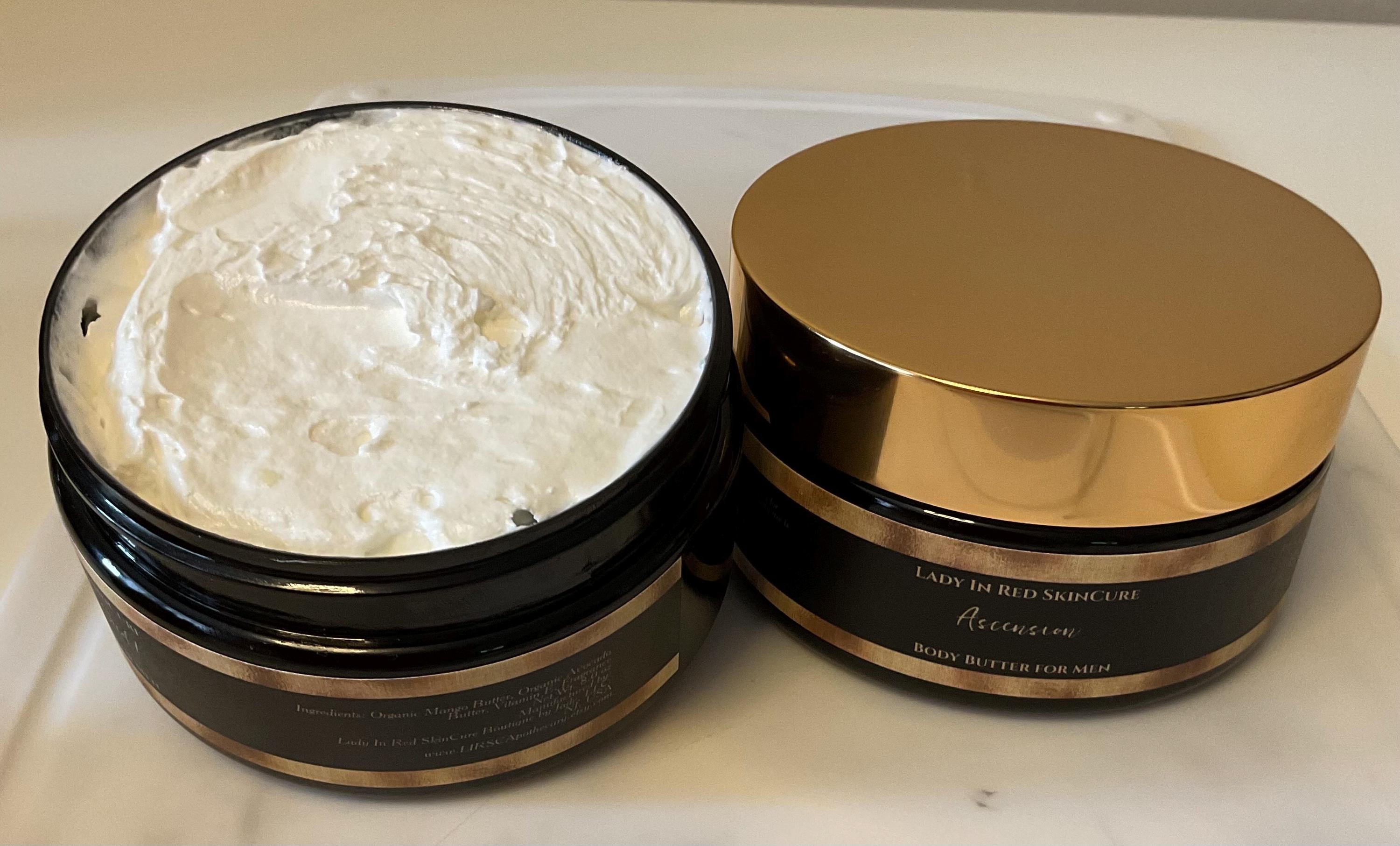 Our Body Butter for Men is an intense moisturizer that is a highly effective emollient; with a refined scent. Created with a base of organic Avocado Butter and organic Mango Butter. It works well on combination and normal skin types. Available in 3 fragrances.