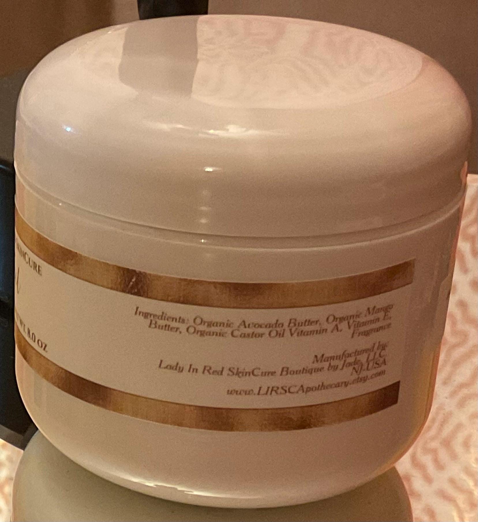 Our luxurious Body Butter for women is an intense moisturizer that is a highly effective emollient. Created with organic Avocado Butter and Mango Butter; it works well on combination and normal skin types.