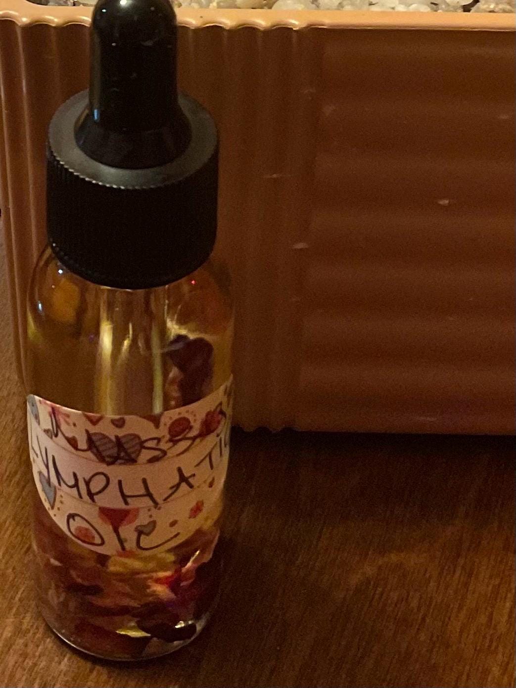 Lymphatic Massage Oil: Lymphatic massage works by gently manipulating specific areas of the body to promote the movement of lymph fluid. Overall, lymphatic massage is designed to enhance the body's natural detoxification processes and improve overall health. Base: Castor Oil, Fragrance: Lavender & Rose, Contains: Rose Petals, Proprietary Essential Oil Blend