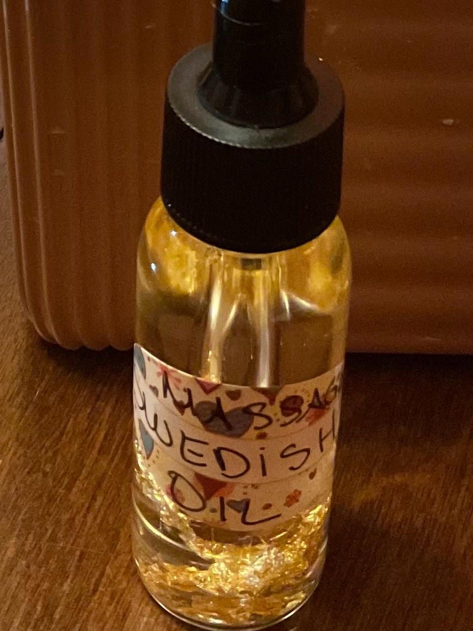 Swedish Massage Oil: Used for strokes along the body that can improve circulation and can help your body's tissues get nutrients and oxygen, as well as remove waste. Eases stress and pain.